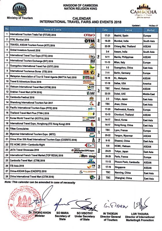 英語版ですが、カンボジアの観光省作成のリスト2018年度版がこちら。