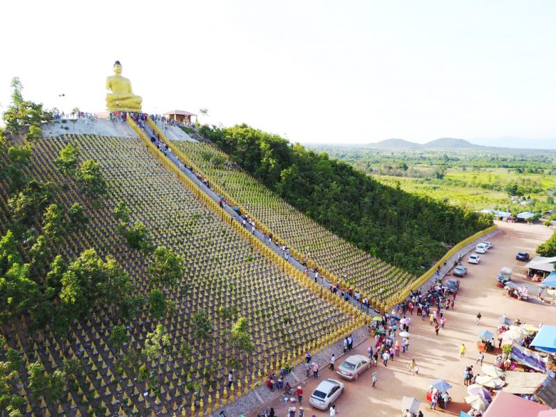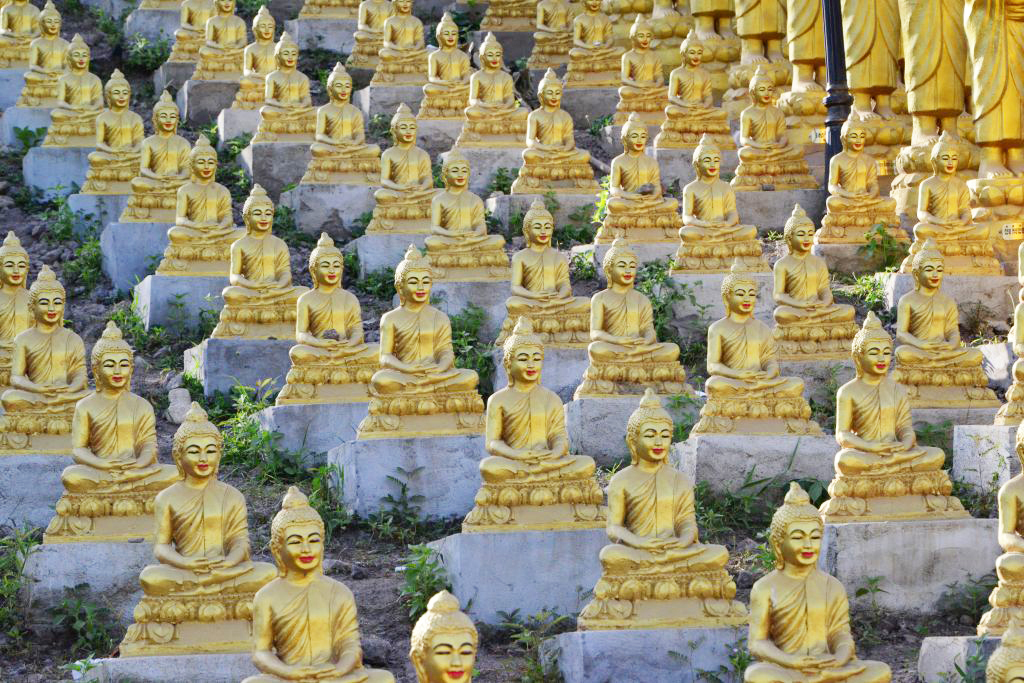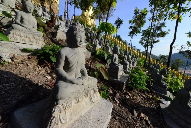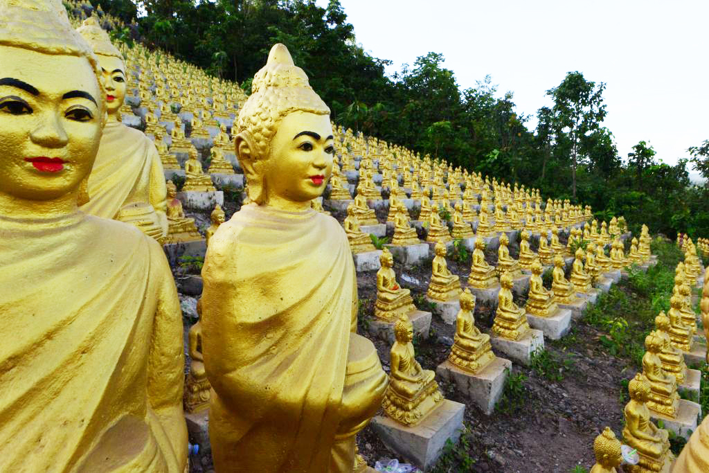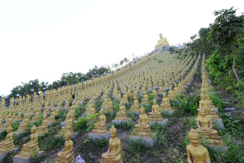 現在は20000体ほどの小さな金の仏陀像が、丘の上にある10メートルほどの仏陀像を取り囲んでおり、その仏像は毎日少しずつ増加しています。