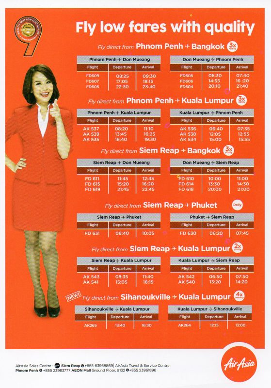 特に、カンボジア発のフライトなんかも、あの時初めて格安航空来たんだよね~。っていうようなこともあり将来的なため2017年度のエアアジアフライトスケジュールを残しておきます。