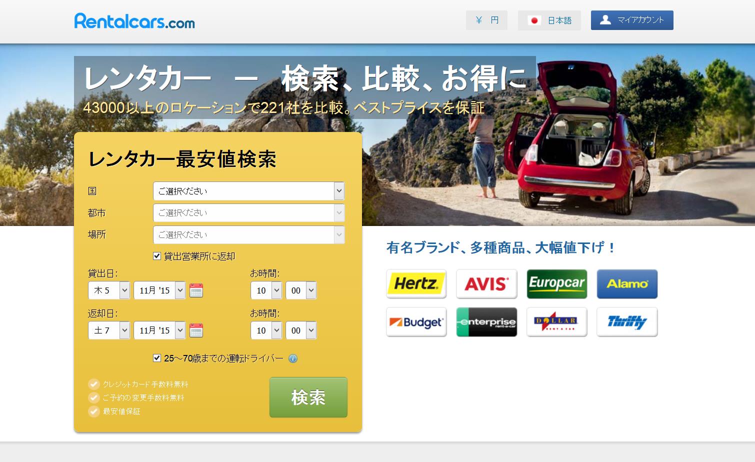 有名どころのレンタルカードットコムを利用したんですが、このサイト、まずはざっくり予定を入れるとレンタル代金の見積もりが出ます。