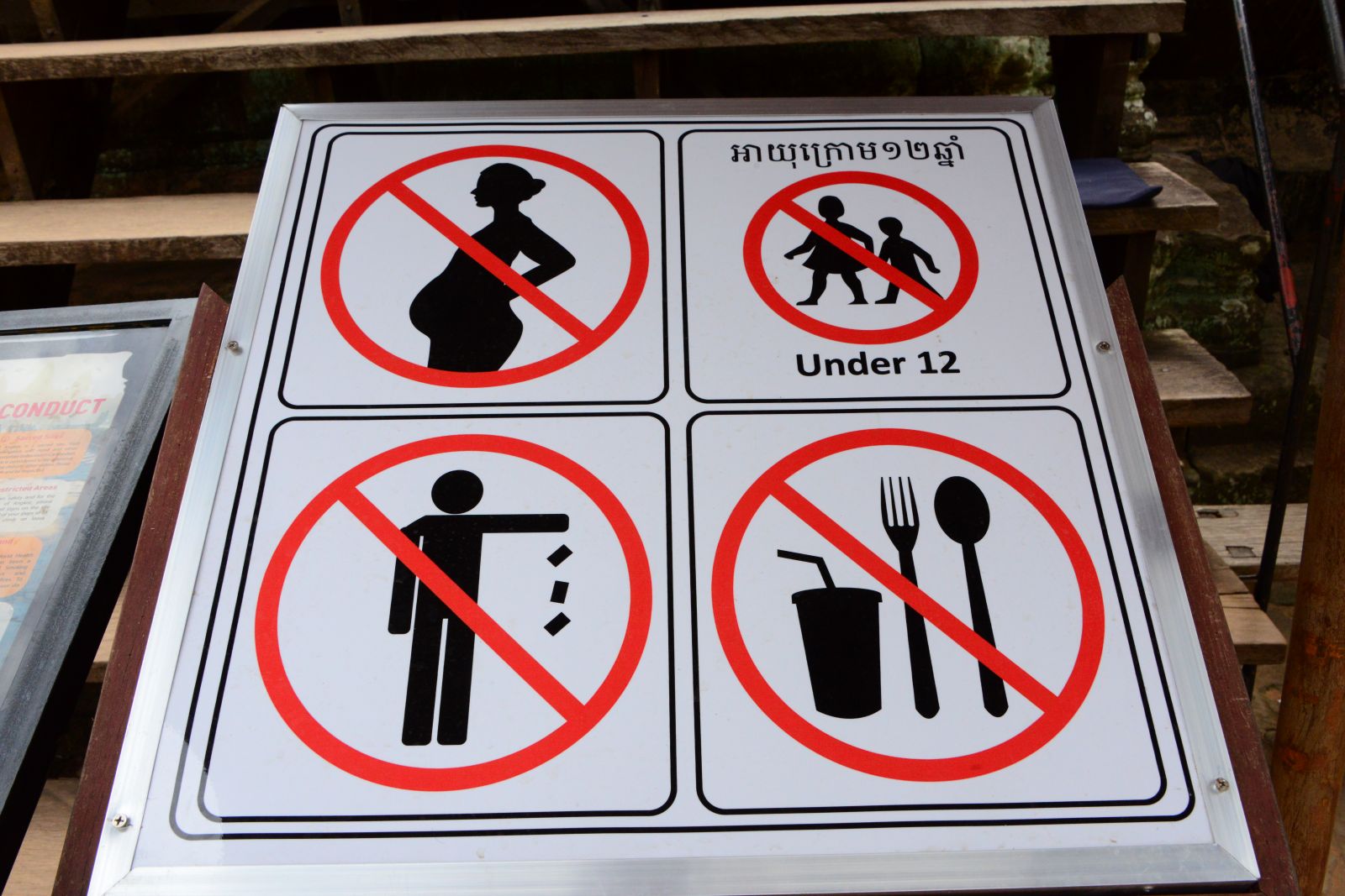 入り口に看板登場。妊婦、12歳未満、ゴミ捨て、飲食は禁止。ちなみに一方通行となっており、裏から入ることは禁止されています。