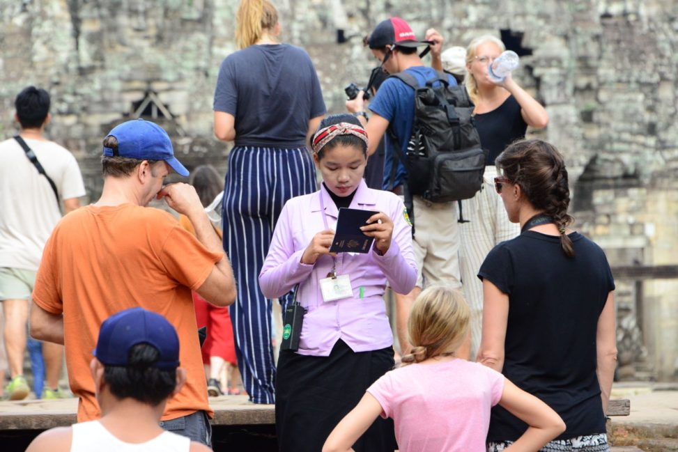 アンコールワット前ではガイドが声掛け(2時間で15$だそう)