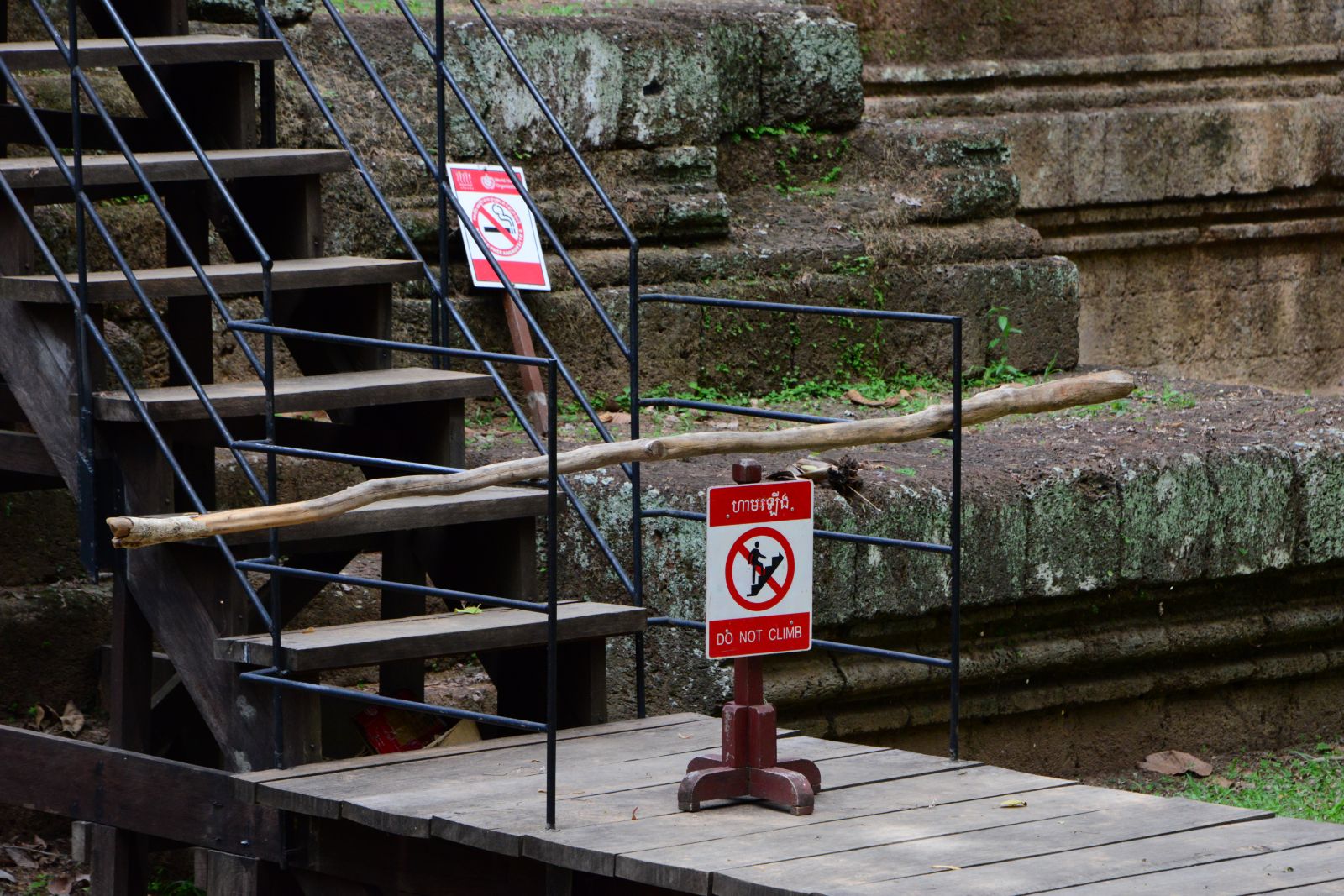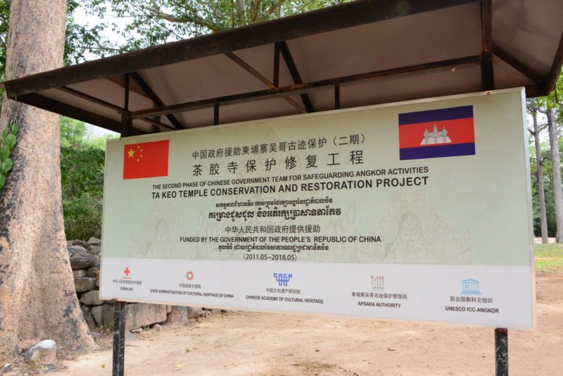 中国による修復。遺跡にはところどころに看板が取り付けられています。