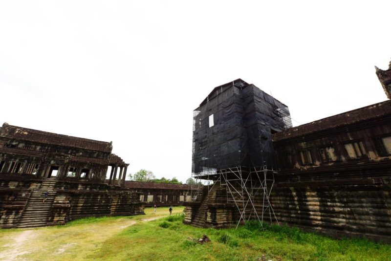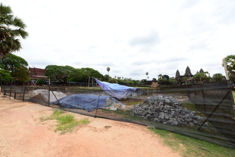 アンコールワットの池の前(北側)が修復中。