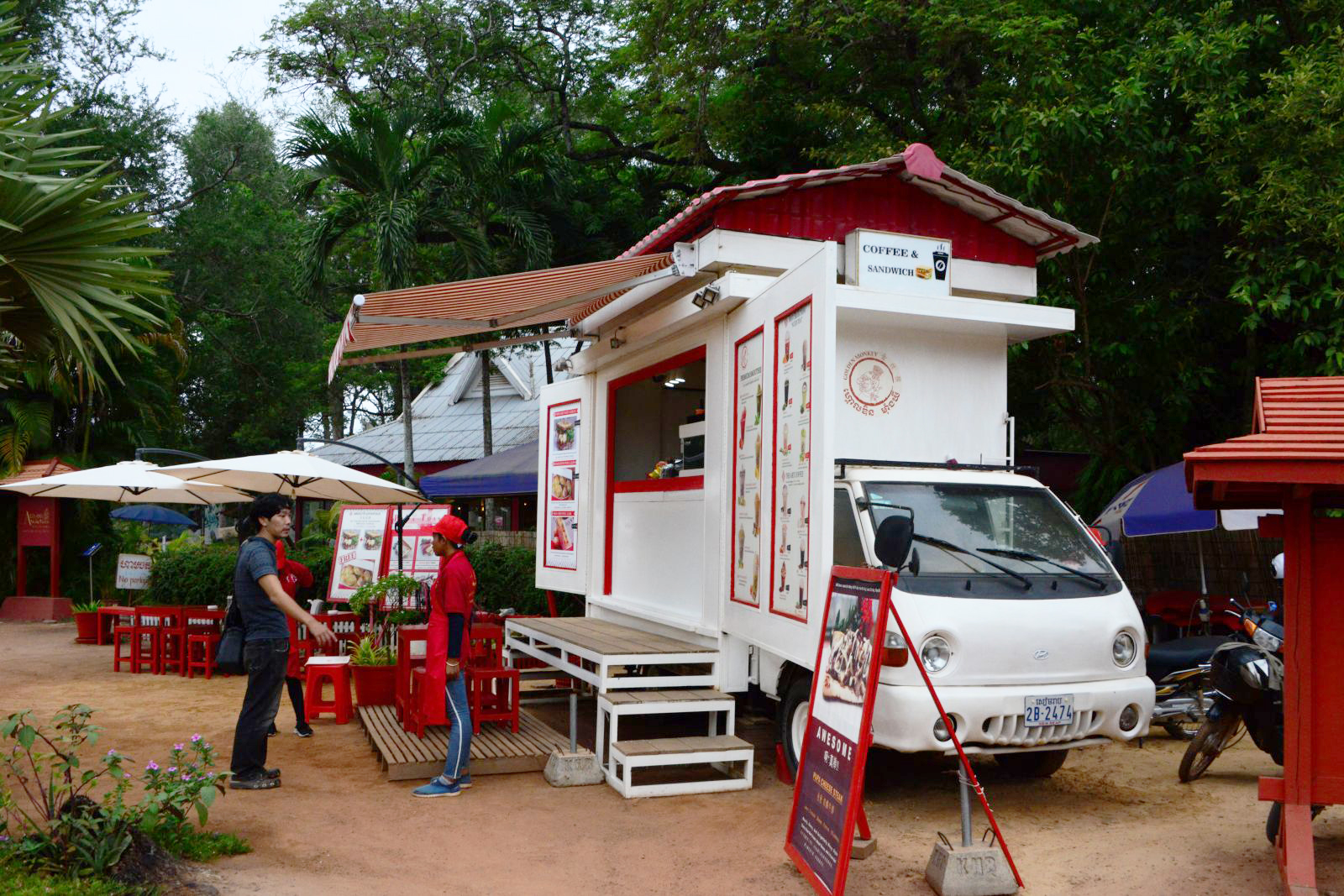 メジャーな遺跡近くには、必ずこの移動式カフェがある