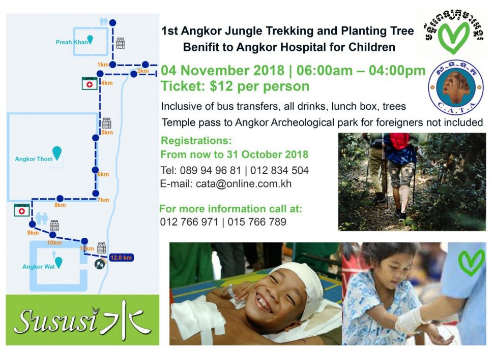 【カンボジア】遺跡内をトレッキング!第1回アンコールトレッキングツアー開催! 第1回アンコールジャングルトレッキング&植林チャリティイベントが2018年11月4日にシェムリアップ、アンコール遺跡内で開催されます。 こちらは朝6:00にプリアカン遺跡から出発。アンコールワットまで12㎞のジャングルトレッキングとなり、途中お弁当を食べ、16:00には終了。 参加費は12$ですが、外国人は遺跡入場料が別途必要となるのでご注意ください。 その他詳細は TEL:012-766-971 / 015-766-789まで 25/10/2018 投稿先 アンコール遺跡, カンボジア|お知らせ・イベント, カンボジア|観光・飲食など, カンボジア情報, シェムリアップ, 期間限定キャンペーン ← 過去の投稿へ 次の投稿へ →