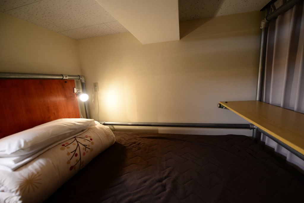 ベッドは思ったよりも快適。足元の板が思ったより便利。
