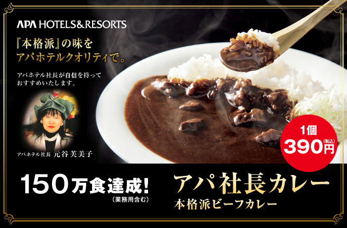 パッケージにはお約束のアパホテル社長の「元谷芙美子」さんが。