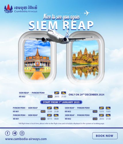 2024年12月29日よりカンボジア航空がシェムリアップープノンペン間のフライトを再開いたします。
