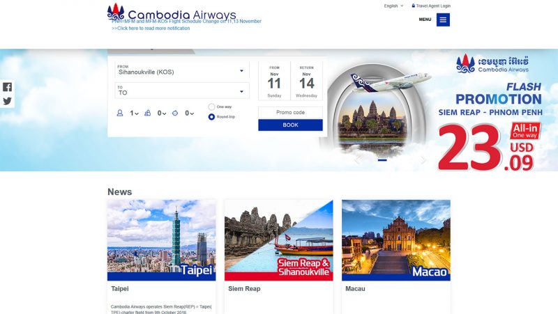 2016年認可取得、2017年9月より運行開始。シェムリアップ⇔プノンペン間のフライトは1日1便午前に運航。他、シハヌークビル、中国などにも運航。定期的なプロモーションもあり、安い時は$3に、その他ざっくり$29~追加となり合計$32程で乗船可能。預け入れ荷物は25㎏まで可能。