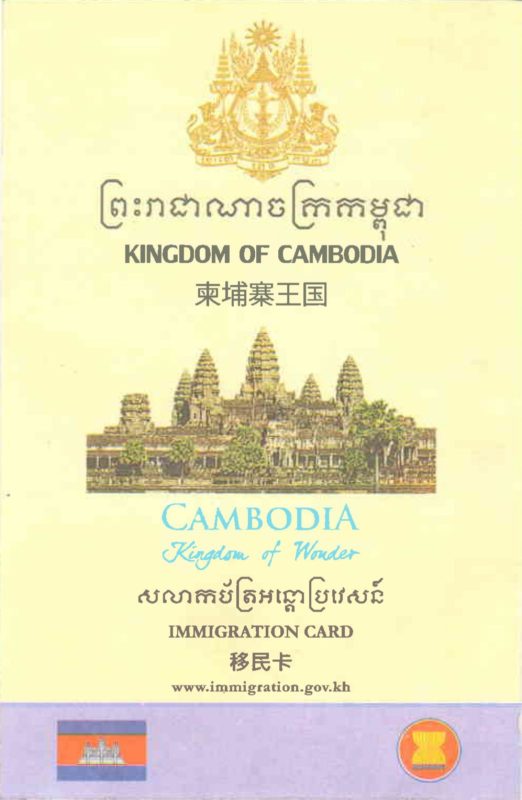 *2019年6月1日より、カンボジアの出入国カードが変更され、イミグレーションカードとなりました。それに伴い、以前のビザ申請書は使用できなくなり、アライバルビザ申請書も兼ねるようになっています。