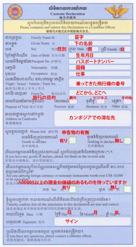 *2019年6月1日より、カンボジアの税関申告書が変更されましたので更新。