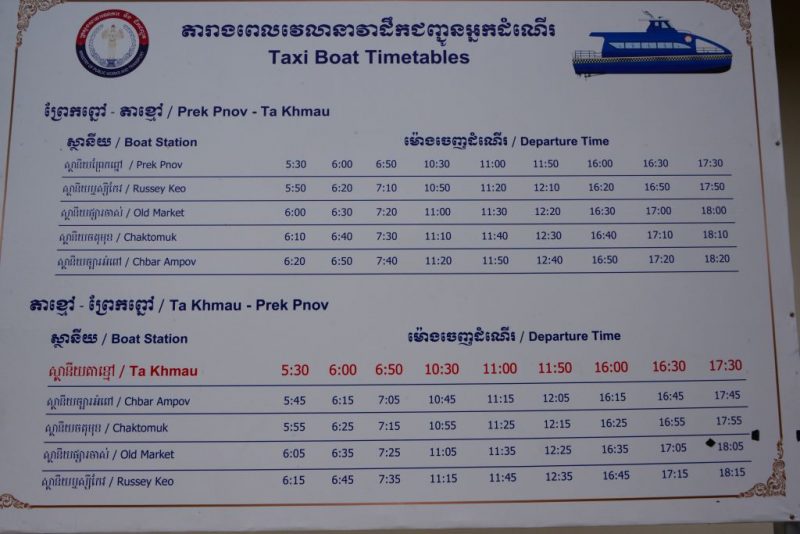| Ta Khmau | 5:30 | 6:00 | 6:50 | 10:30 | 11:00 | 11:50 | 16:00 | 16:30 | 17:30 |