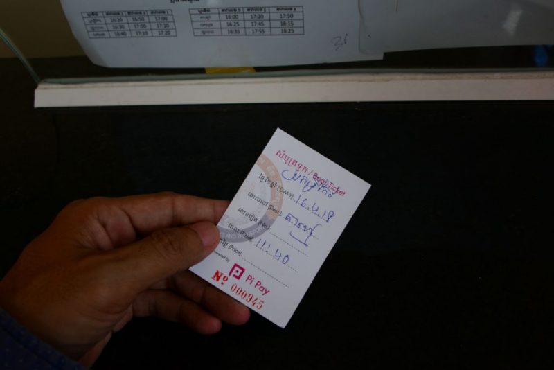 チケット。現在は無料ですが、2018年8月1日以降は5400リエル(約1.4$)になるそうです。