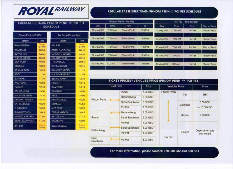 2019年5月のポイペト線のタイムスケジュールが発表されました。