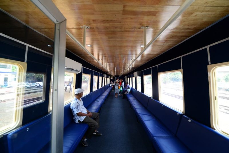 こちらの車両、現在メキシコから取り寄せており、2018年6月にプノンペンに到着予定です。到着後はプノンペン駅⇔空港間を25分で行けるようになるそうです。全56席なり。