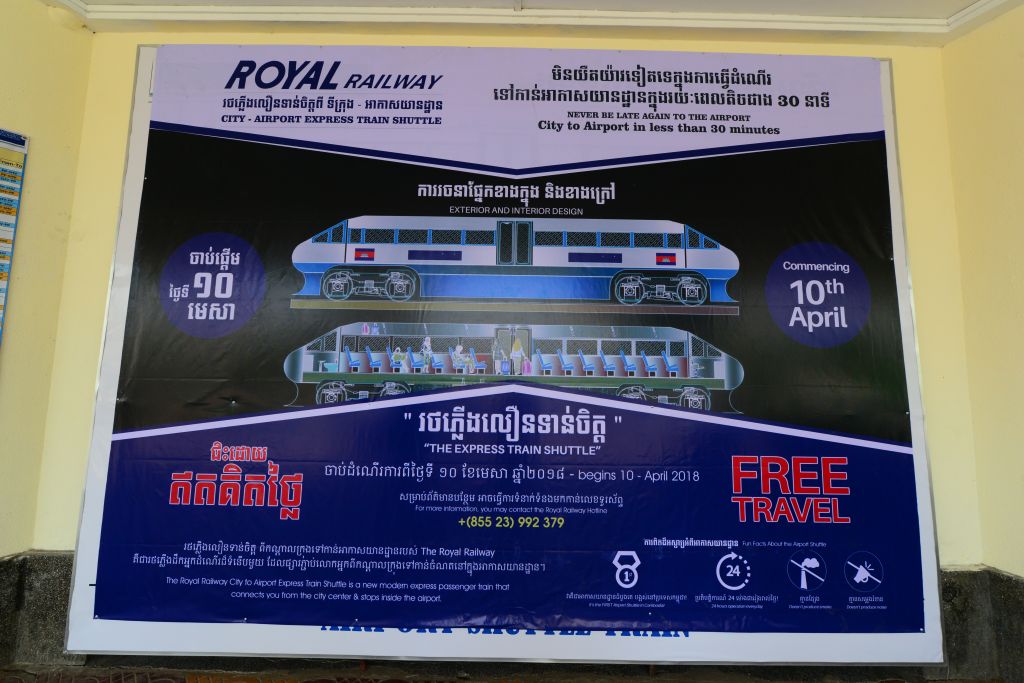 2018年4月10日よりプノンペン空港-プノンペン駅間のシャトルトレインが開始されました。7月31日までは無料運行とのことなのでお試し乗車はいかがでしょうか?