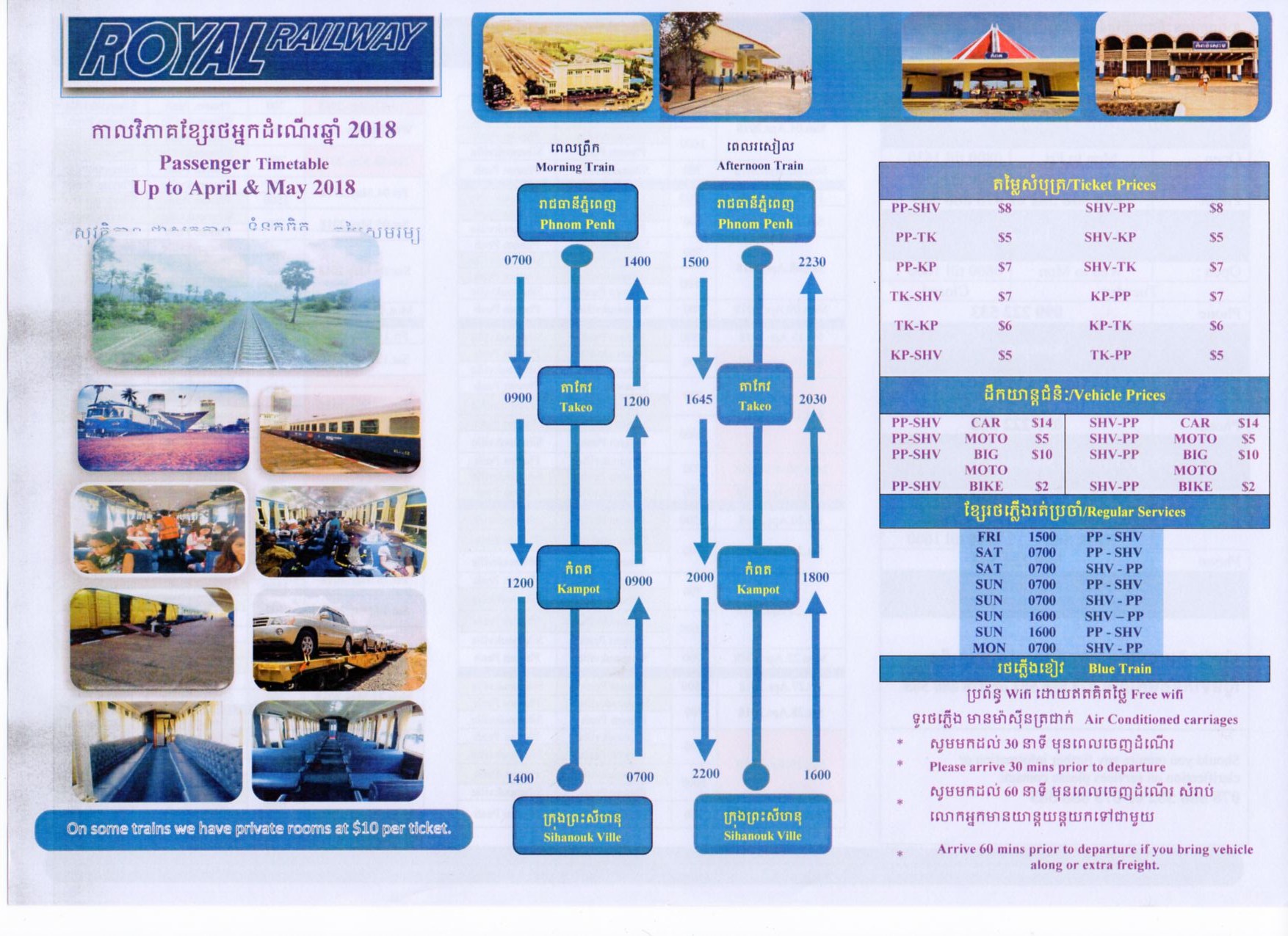 2018年4月、5月のカンボジアの鉄道タイムスケジュールが発表されました。