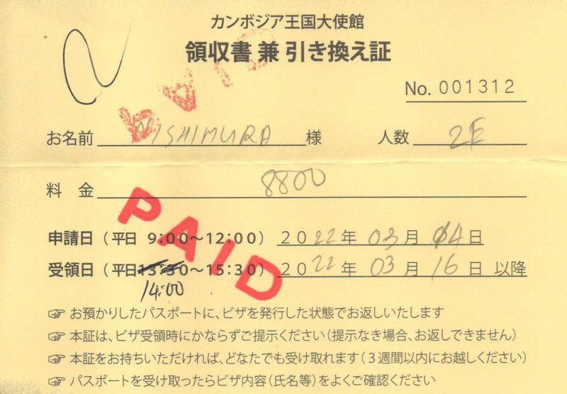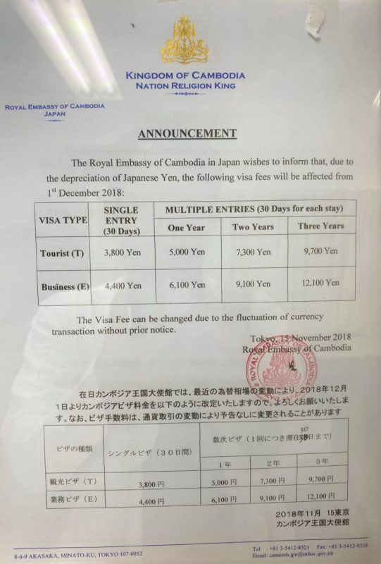 *現時点では、カンボジアの空港でアライバルビザが取得可能ですので、日本で事前取得するメリットはあまりないです。