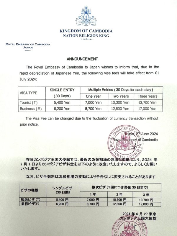 電話:03-5412-8521(日本語可) 緊急時:080-4689-9374(クメール語と英語のみ)