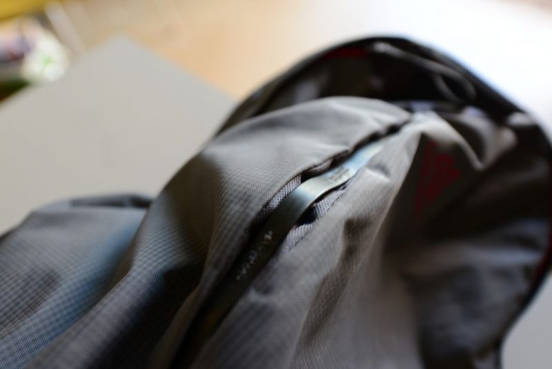 また、リュック後ろには夜の自転車移動などで安全用の小さなライトを付けたりできるラインがあります。