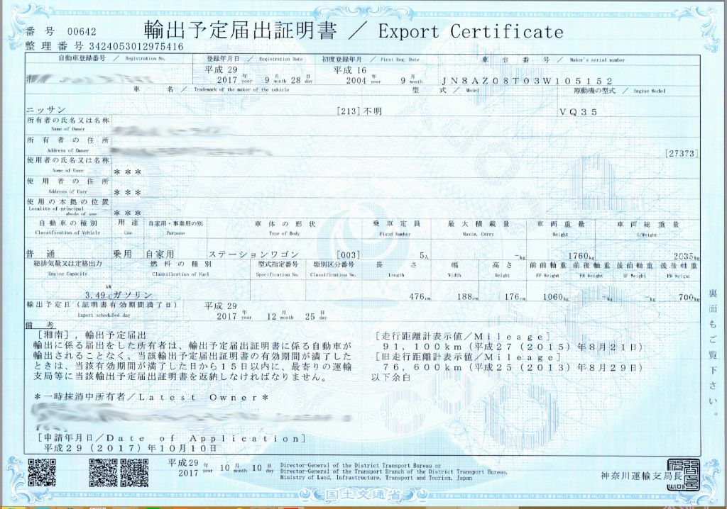 - エンジン番号を全て記載しなければ受け取れない。(通常は証書に4桁だけ表示されているがそれじゃダメ、輸入業者から送ってもらった書類には4桁しか記載がなかった)船に載せた後だと調べようがないから、カンボジア到着後も受け取ることができないため、そのまま日本に戻すこととなり、さらなる船代がかかる。またコンテナはレンタルだからコンテナ費もかかる。