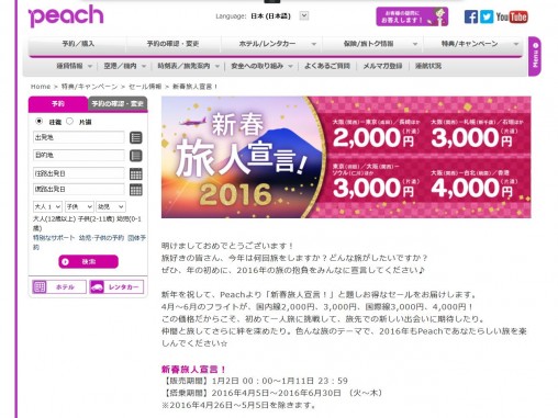ピーチ航空が「新春旅人宣言!」と題した特別セールを開催し…