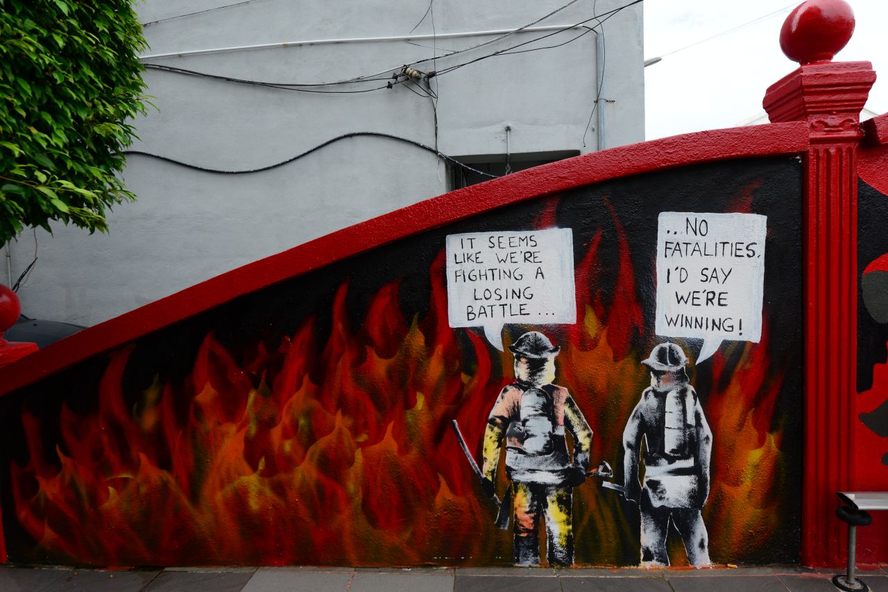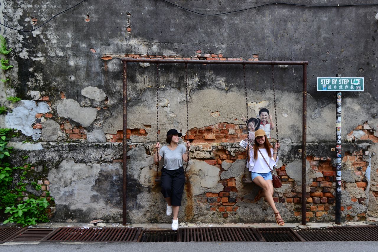 ここは立体とアートのミックスです。(ブランコは本物、ブランコ後ろの子供2人は絵、前の2人は本物の旅行客)