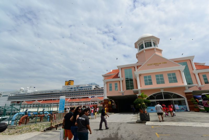船から降りる人たちとはいる人たち。ここもコスタの出発港の一つとなっており、ここで乗船、下船する人もいるようです。
