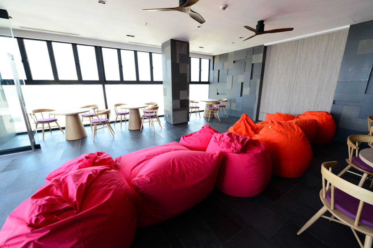 20階まであり、屋上にはバーやプール、ジムがあります。