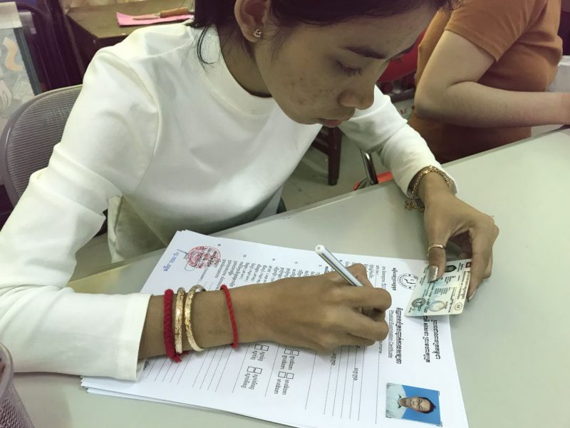 その後、所内の順番に回り、パスポート、日本の免許などを何度&何人もの担当者たちに見せて確認して進んでいきます。以前のカンボジアにはなかった本気のチェックです。