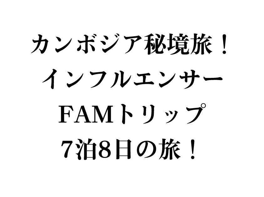 先日ご紹介した、カンボジア観光省主催インフルエンサー&メディア向けファムトリップに参加してきました。今回は3月2日~3月9日までの7泊8日の旅に日本から5人+1人(自分)が参加。本当は10人+1人が参加予定だったのですが、コロナウィルスの影響もあり開催日1週間前にバタバタと5人の不参加が急遽決定となり、最後まで開催するのかどうかが観光省でも議題に上がりましたが、どうにか催行することになりました。