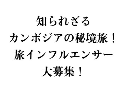 かなり急なお知らせとなりますが、カンボジア観光省では20 … 続きを読む 【カンボジア】観光省主催!カンボジアの秘境旅!インフルエンサー、メディア向け特別無料招待ファムトリップ参加者募集!