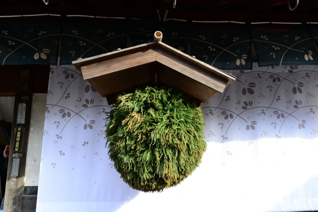 新酒ができたことを知らせるサインの杉玉(酒林)