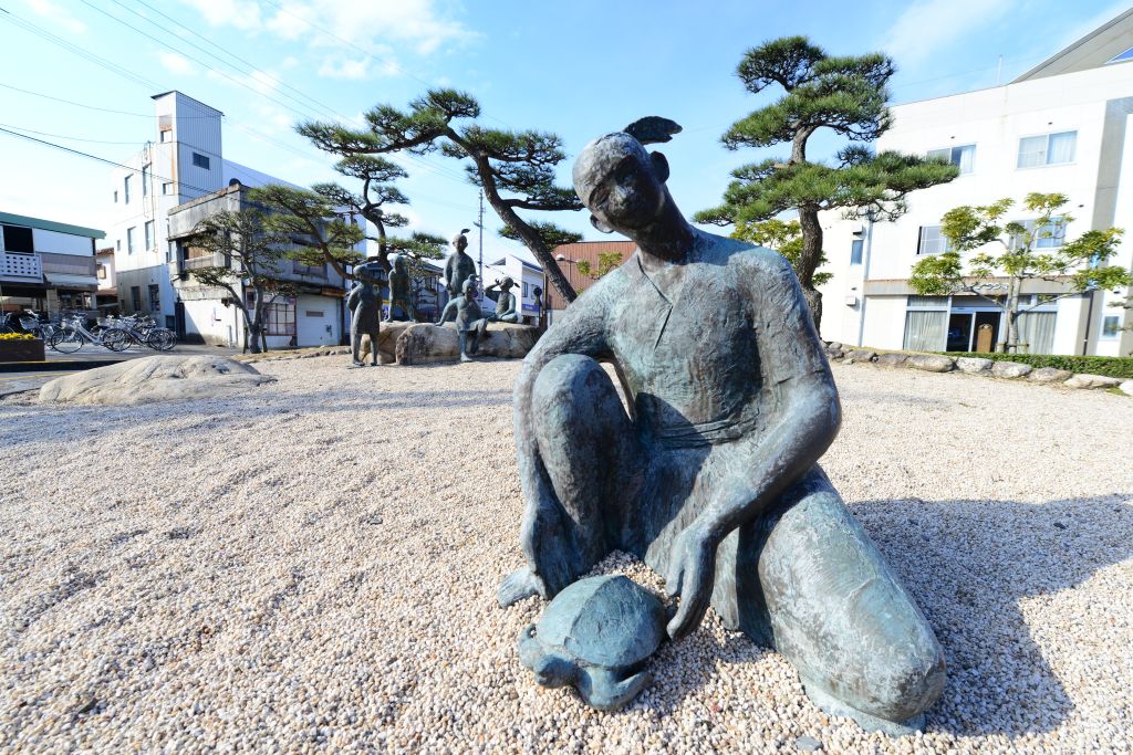 朝: 地元の観光ポイント、浦島太郎の町を地域活性のために活動している方と一緒に見学。