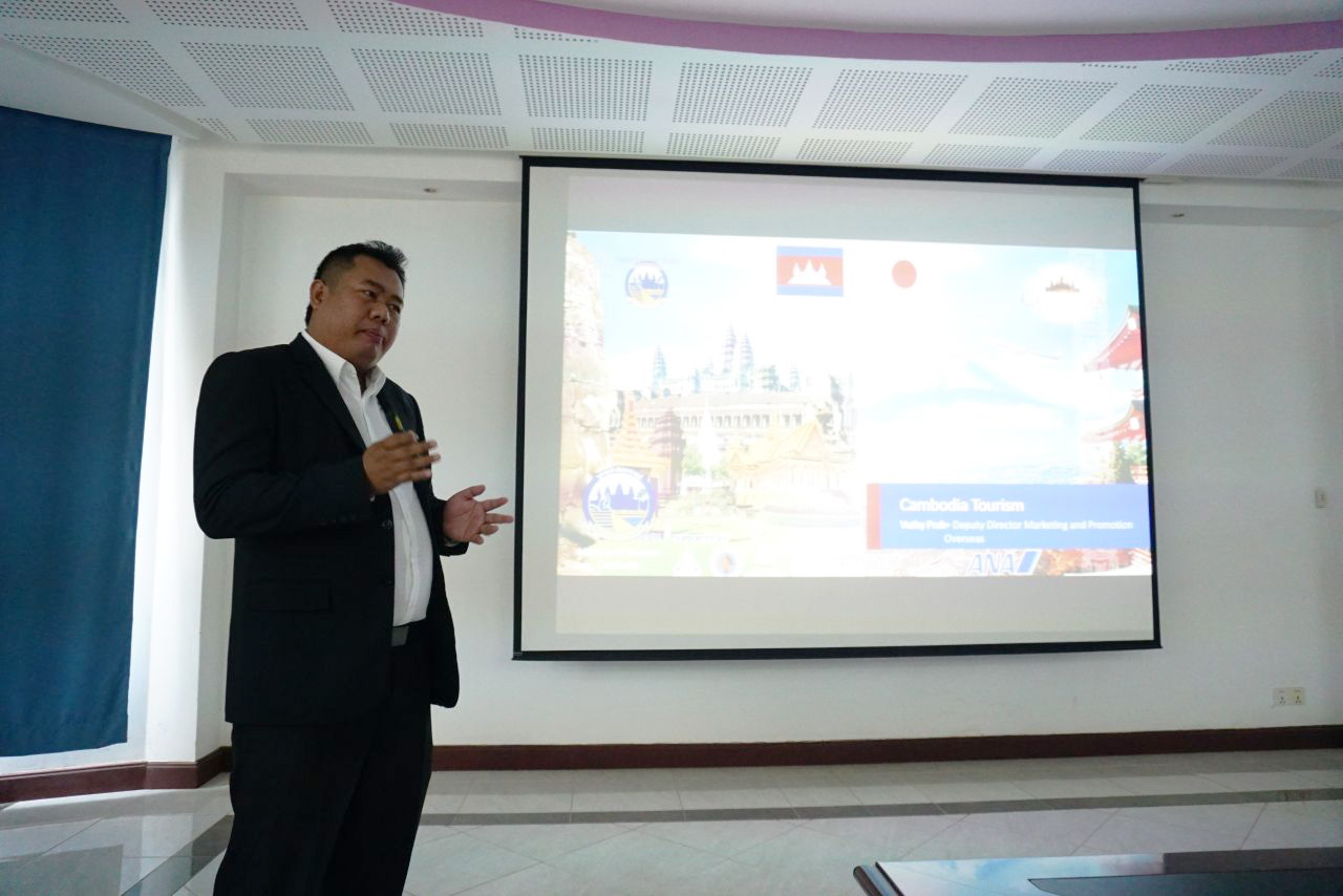 観光省プロモーションマーケティング部担当者よりカンボジアの観光開発に関する話、現在の日本人の訪問状況、今後の施策などの話を大会議場で紹介しました。
