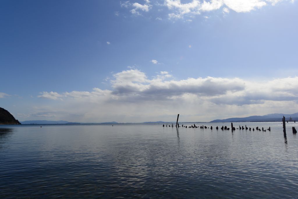 もともとこの西浜は漁村として発展し、江戸時代以降、琵琶湖の伝統的な漁法である地引網漁等が盛んにおこなわれていました。そして、近代以降はそれら収穫された魚類を加工するために作業場や工場が立ち並ぶようになったとのこと。また宿場町として大津と北陸を結ぶ蒸気船航路でもあったそうで、現在も当時の桟橋が杭だけ残っています。