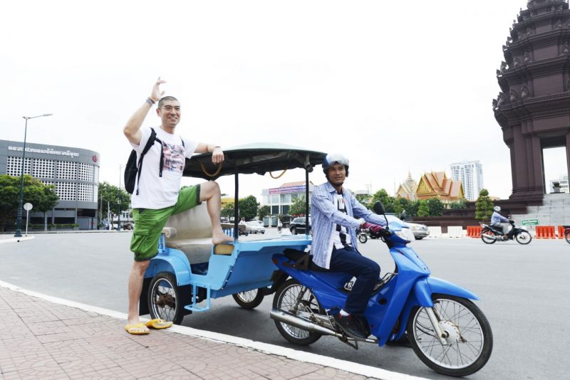 あ、ちなみにこちらは以前購入したトゥクトゥクで本体購入額は中古で350$、別途カラー代はが250$位。高嶋兄さんがトゥクトゥクに乗ってカンボジアを縦断するというロケで使用したものです。通常のロケだと撮影時だけ乗って、あとは快適な車移動っていうケースが多いんですが、この時は最初から最後まで本気で乗り切りました。トゥクトゥクも長距離移動だと結構疲れるし大変だったんだろうなと思ったりします。こちらのトゥクトゥクは現在クロマーヤマトゲストハウスにおいてあるので是非乗って写真撮ってみてください。