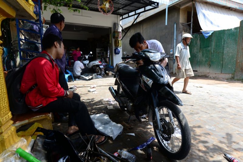 建物の裏に行くと整備中のトゥクトゥクもあり。