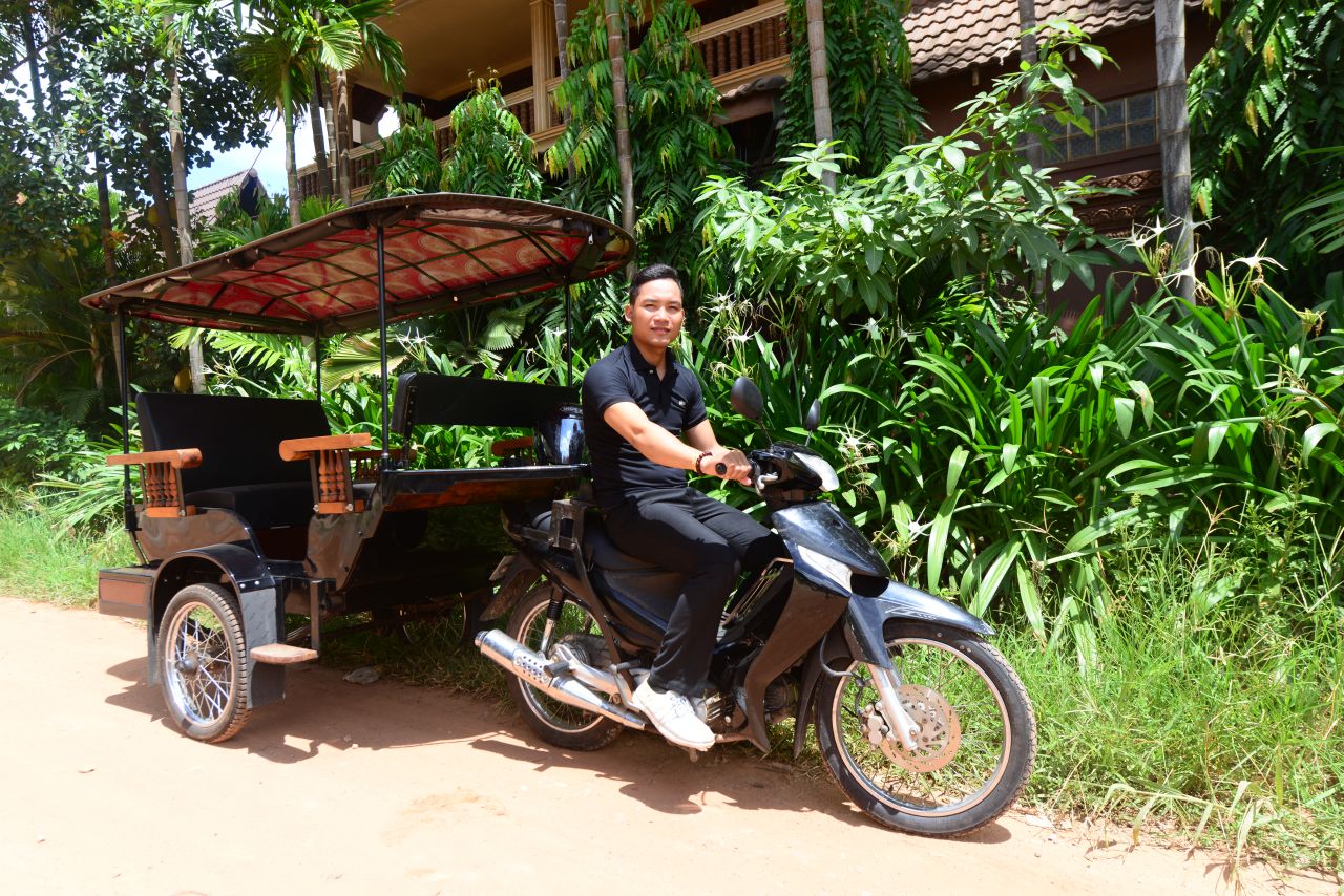 こちらのトゥクトゥクですが、クロマーツアーズ・スケッチトラベルで使用していますのでトゥクトゥクで観光したい場合はお問い合わせくださいませ。と言っても普通のトゥクトゥクとあんまり変わりませんけどね。