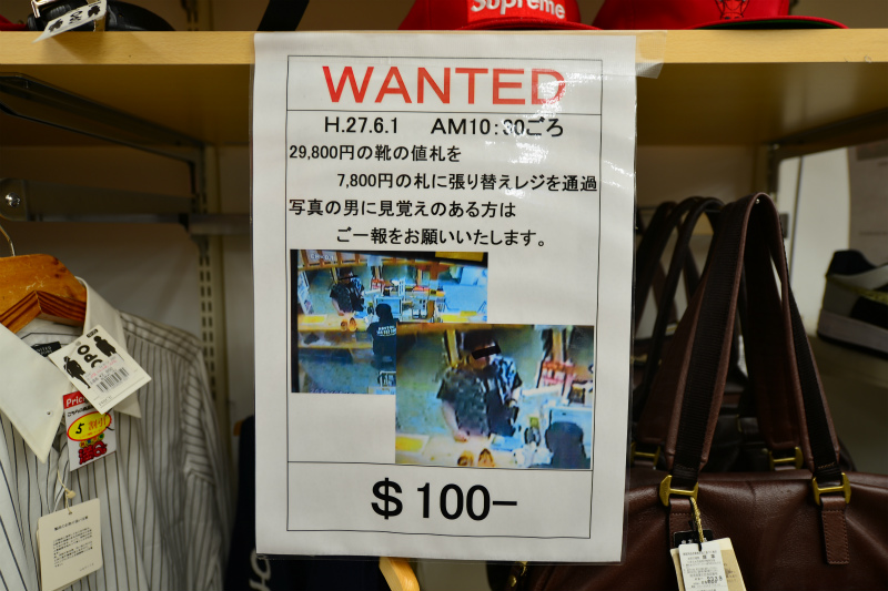 Wanted(求ム!) $100-の賞金が出るという表示が、高知県のとあるお店にありました。