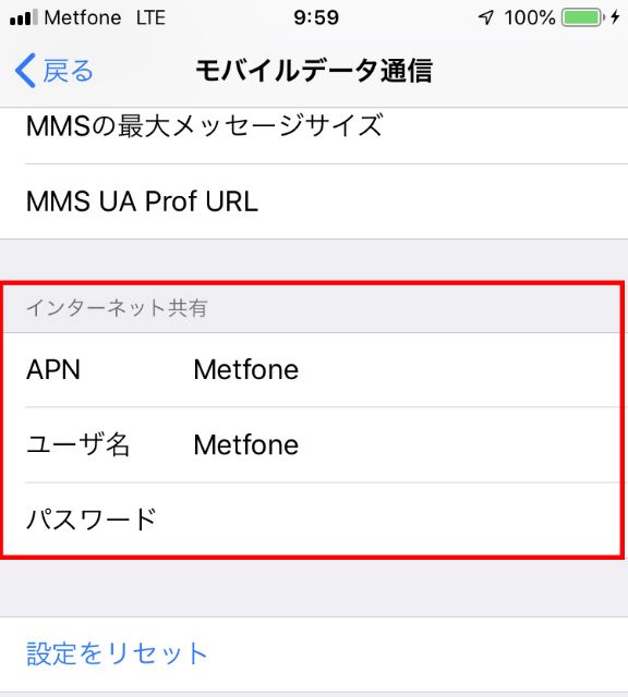今回のメットフォンだと、APN:Metfone、ユーザ名:Metfoneだったのでそれを打ち込みます。