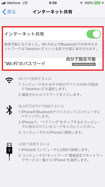 注:インターネット共有をいつもしている人向けとなるので、一部簡略化します。