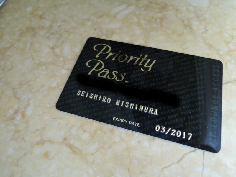 中でも一番審査が緩い?のが楽天プレミアムカード。年会費が10,500円で、プライオリティパス(399$相当)がおまけでついてきます。(後日申請しなきゃいけないから、海外に行く1カ月以上前に申請すべし!)
