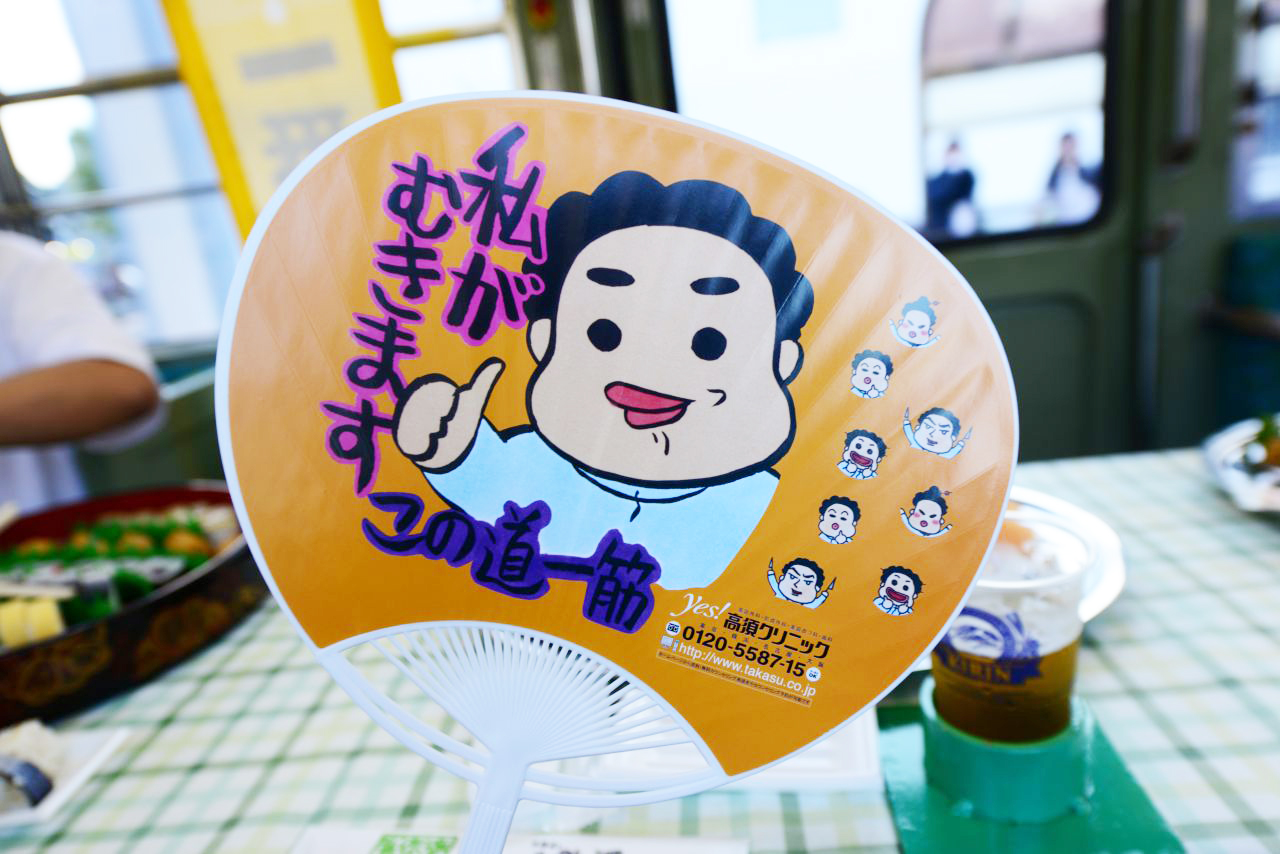 念のため、おきゃく電車とは何?って方に、「おきゃく」とは、「宴会」みたいなものです。それを高知のちんちん電車内で楽しむという夏場限定のイベントで、お金さえ出さば個人でも、企業でもOKっというざっくりした企画なんですね。