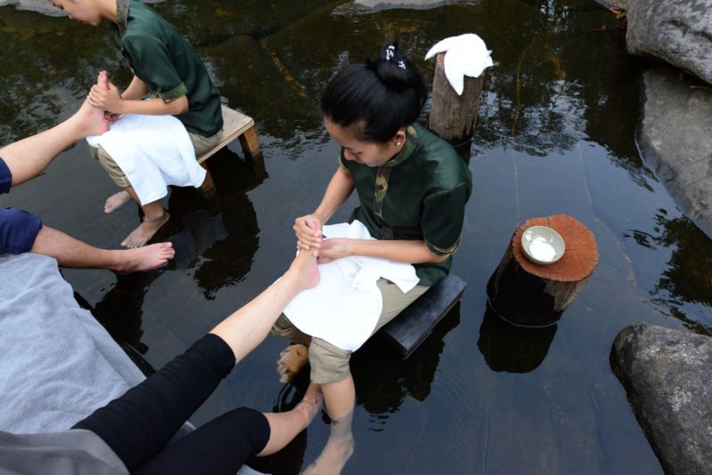 川の中では無料フットマッサージが。ついでに川の中ではフィッシュマッサージです。