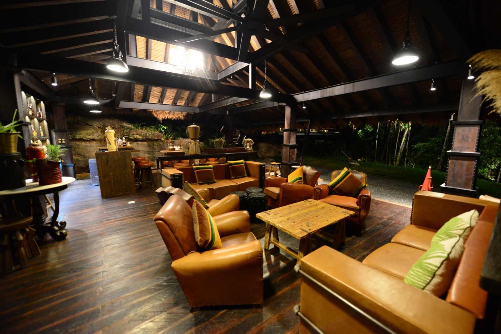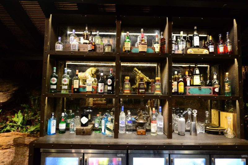 奥にあるのがランディングゾーンバーで、その奥に滝とプールがあります。