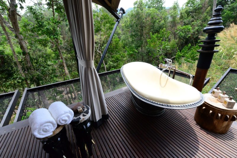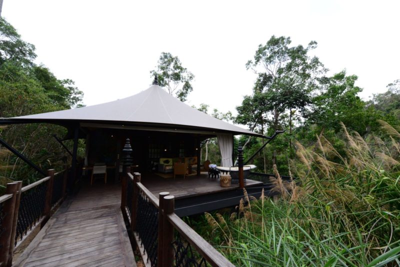 こちらのホテル、シェムリアップにあるシンタマニホテルグループが満を持してプレアシハヌーク州のカルダモン国立公園内にオープンした”特別な滞在”が楽しめる高級グランピング宿泊施設となり、カテゴリーはワイルドテント(100平米、10室)、ウォーターフォールテント(100平米4室)、2ベッドルームテント(141平米、1室)の合計15室となっております。