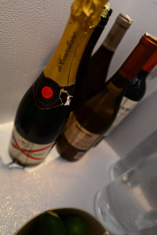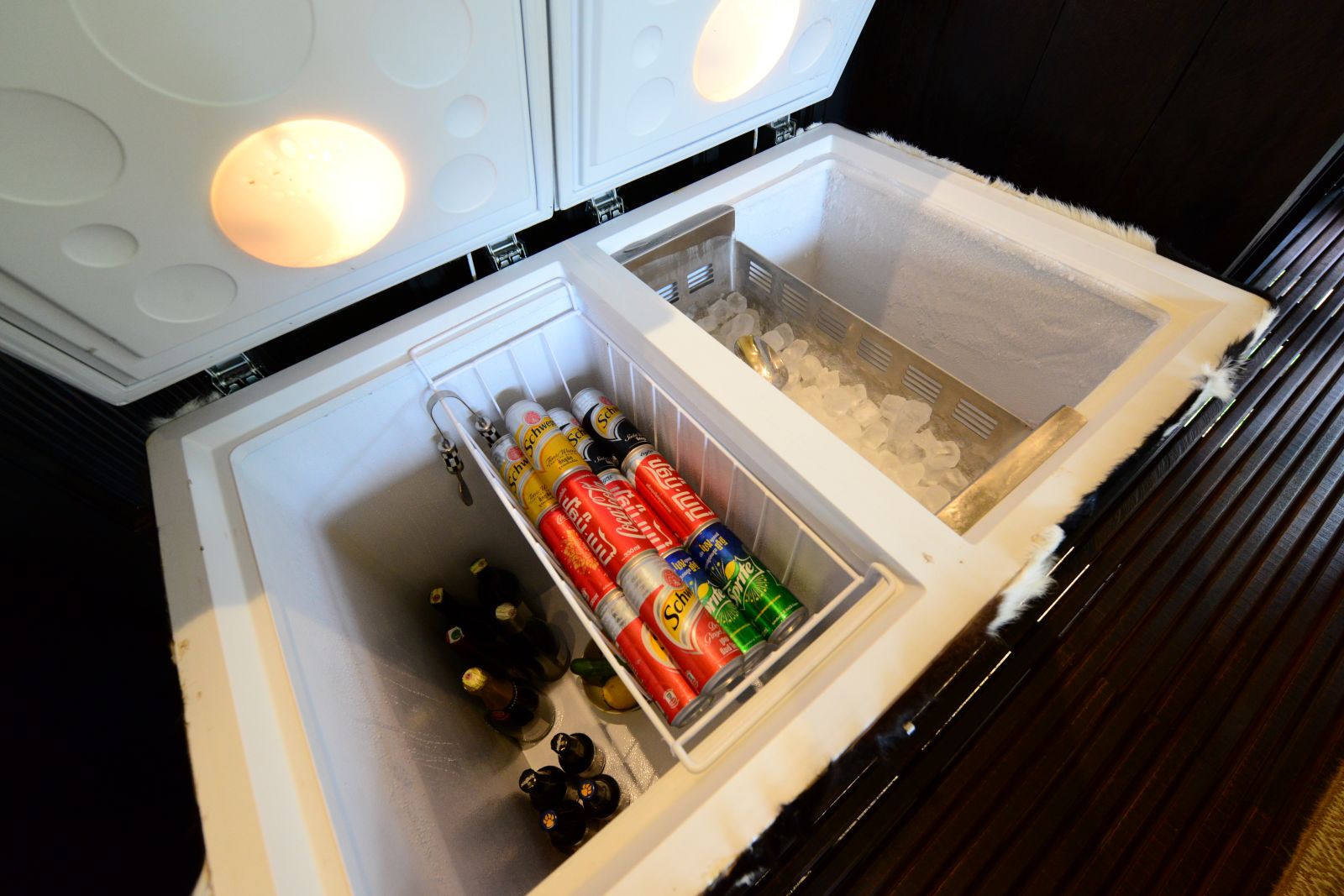 すぐ横には冷蔵庫があり、シャンパンやらビールやらソフトドリンクなどがいっぱい入ってます。ちなみにどれを飲んでもいつでも補充してくれ、全部が無料です。
