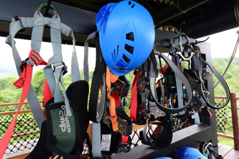 チェックイン前からこんなハーネスなどを着けることになるとは・・・。